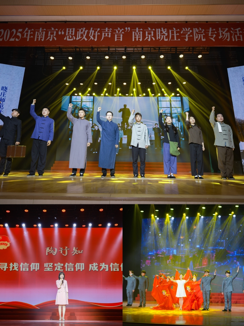 南京晓庄学院作为南京大中小学思政课一体化建设联盟校,始终坚持把思政工作摆在人才培养的首要位置,把“大思政课”贯穿立德树人全过程。学校依托南京“思政好声音”品牌项目,注重“党建+”品牌建设,以陶行知的爱国情怀、“晓庄十英烈”精神为支点,将红色教育融入课堂教学、艺术创作、志愿服务,打造“行走的思政课堂”“红色文艺轻骑兵”等品牌,曾四次获得全国高校校园文化建设优秀成果一等奖。