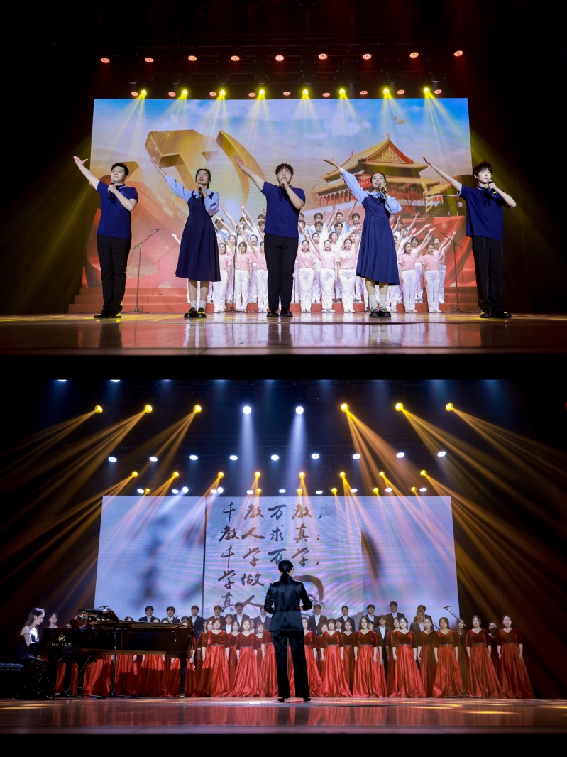 在“百年·强国梦想”篇章,南京晓庄学院音乐学院以诗朗诵《走进晓庄迈向新时代》和原创混声合唱《我行我知》致敬晓庄先贤,让新时代的晓庄人从他们的故事中汲取智慧,坚定前行。