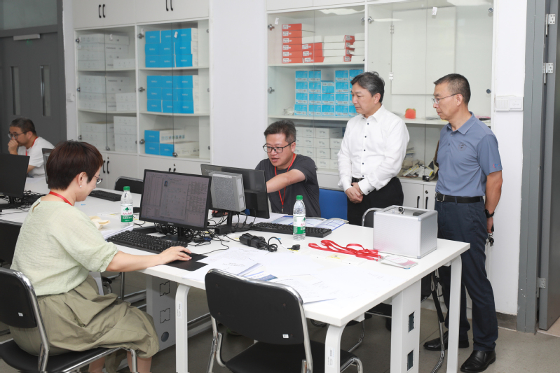 校领导听取了学工处关于今年普高录取工作情况的汇报,实地查看阅档、审核、数据管理等环节,并与工作人员深入交流,对招生录取的规范性和高效性予以充分肯定,对录取现场全体工作人员在暑期坚守工作岗位、辛勤付出表示慰问。