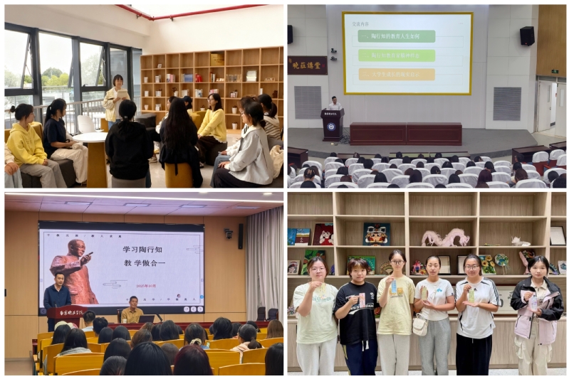文学院举办“缅怀陶公 共读经典”读书分享会,组织大一新生广泛研读原著,多位同学结合“钉锤校长”等事例,围绕“何以从教、何以为师”展开深度交流,学院后续还将开展陶行知主题书法作品征集、读后感展评等活动。