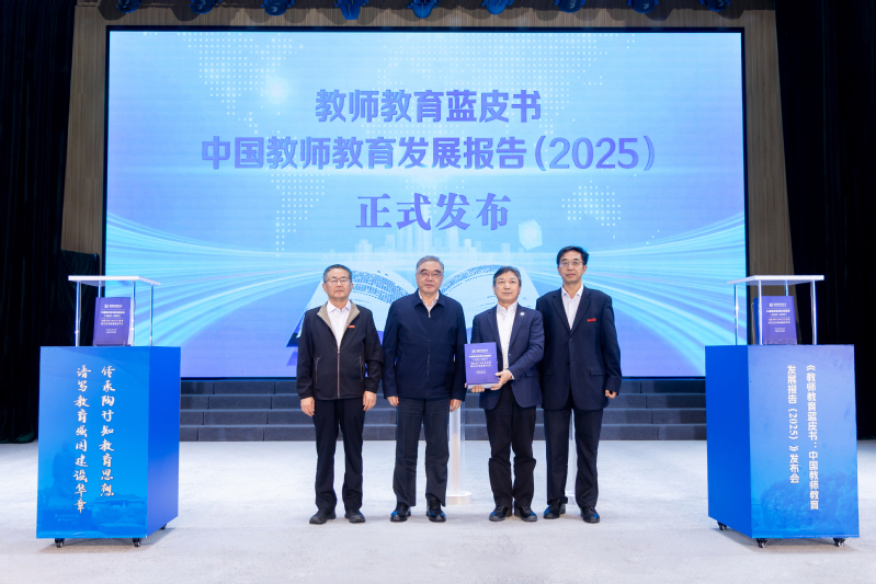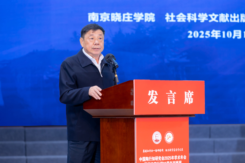 10月18日,由南京晓庄学院、社会科学文献出版社、中国陶行知研究会共同主办的“传承陶行知教育思想,谱写教育强国建设华章”《教师教育蓝皮书:中国教师教育发展报告(2025)》发布会在淮安举行,全国政协副主席、民进中央常务副主席、中国陶行知研究会会长朱永新出席发布会。教育部基础教育司副司长游森,中国陶行知研究会常务副会长、秘书长陈洛,南京晓庄学院党委书记张策华、副校长赵向军,教师教育蓝皮书主编、南京晓庄学院特聘教授凌亢,中国陶行知研究会理事、会员,教师教育蓝皮书作者代表、南京晓庄学院师生代表300多人参加会议。发布会由陈洛主持。