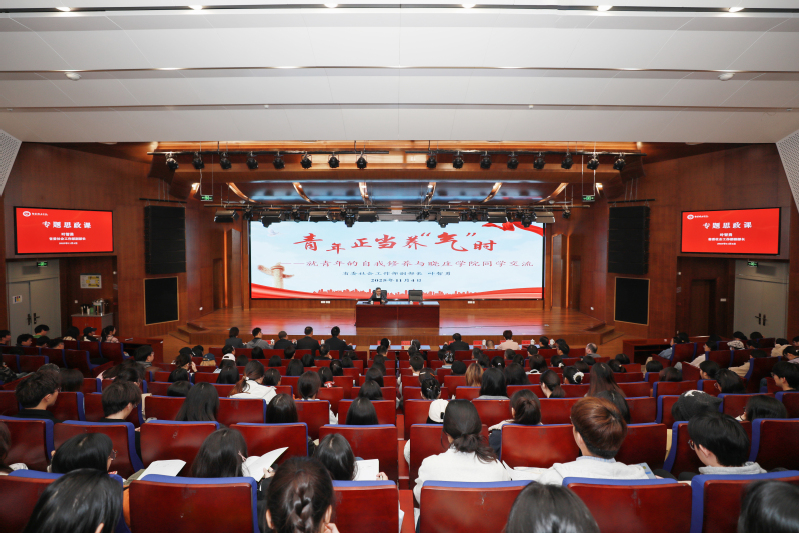 叶智勇以中华优秀传统文化中“气”的智慧为切入点,解读了“气”字的丰富内涵和基本属性,并从“志气、底气、锐气、静气、正气”五个方面阐述了新时代青年应具备的精神素养。在“志气”方面,他引导青年树立远大理想,以信仰提升人生境界;针对“底气”,他剖析时代挑战与现实压力,激励青年勤学实践、夯实本领;围绕“锐气”,他立足中国式现代化的广阔舞台,号召青年挺膺担当、淬炼自我;谈及“静气”,他强调在复杂环境中沉心静气,通过三重境界浸润人生深度;最后以“正气”寄语师生崇德向善、大道直行,从小事做起涵养品格。整场讲座历时约一个半小时,现场气氛庄重热烈,师生深受启迪。