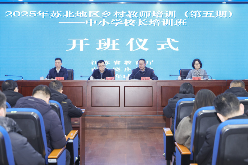 1月5日,2025年苏北地区乡村教师培训(第五期)——中小学校长培训班开班仪式在我校莫愁校区举行。省教育厅基础教育处副处长陈斌、办公室副主任王志平,我校副校长王本余出席仪式,与来自苏北五市及湖北秭归的104名乡村中小学校长共同开启为期5天的研修之旅。
