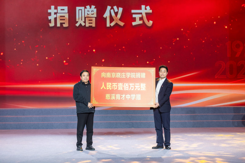 活动中,浙江慈溪育才中学向南京晓庄学院捐赠100万元,助力学校建设与发展。校长张志华向慈溪育才中学回赠“教学做合一”书法作品,彰显两校同心育人、携手共进的深厚情谊。