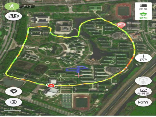 (二)比赛线路:(起点)体育馆北门→沿行知大道→理科组团→西大门→工科楼停车场道路→图书馆南门道路→过桥图书馆东门道路→沿行知大道→服务区→南食堂→行知组团→体育馆北门(终点)。