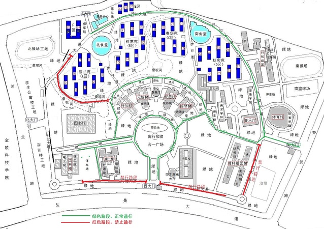 根据工作安排,9月4日至15日,学校将组织开展2022级新生军训。在此期间,行知大道部分路段(行知大道理科组团东南角至学校西门南侧,学校西门北侧至工科楼西门)以及行知大道F区广场至宝善路图书馆东侧小桥路段实行封闭管理。请教职工不要在此路段停放机动车辆,并提前做好绕行准备。