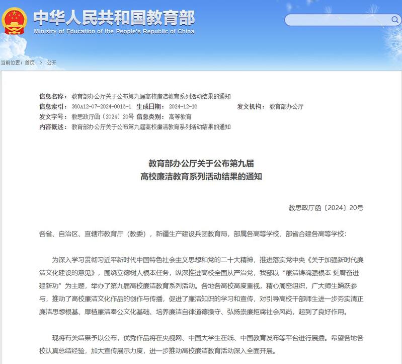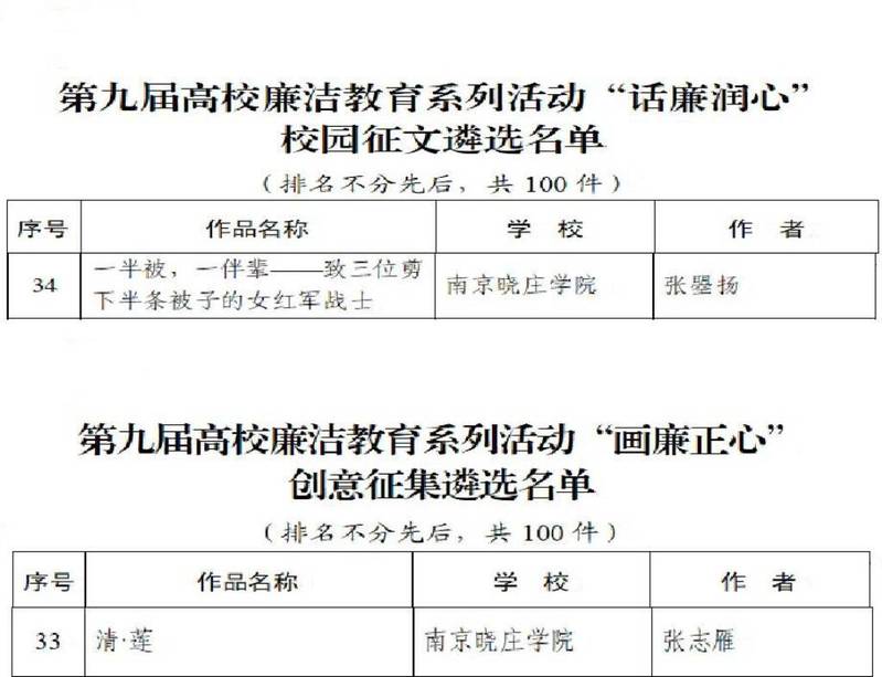 据悉,2024年5月,教育部举办以“廉洁铸魂强根本-挺膺奋进建新功”为主题的第九届高校廉洁教育系列活动,江苏省共有30件作品入选全国遴选名单。